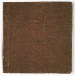 Plats de dessus et de dessous recouverts de fines lamelles de papier tissées sur une trame de fils de soie formant un tissu qui est ensuite collé sur les plats en carton. Vraisemblablement doré à l’origine, le papier est devenu, avec le temps, de couleur légèrement bronze. Les plats et les pages sont maintenus par une reliure à la japonaise en fil de lin.