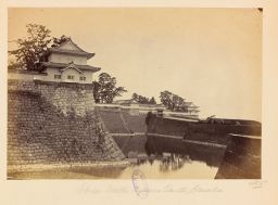 La tourelle au premier plan est le yagura de Ni-ban ; on aperçoit au loin la porte de Tamazukuri et, au-delà, le yagura de Tatsumi. Hors de vue, derrière les arbres à gauche, se trouve l’angle intérieur du yagura d’Ichi-ban.