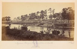 On aperçoit, à son appontement, une des barges du shōgun, avec le pont Kyobashi en aval et, dans le lointain, le yagura de Fushimi, à trois étages, et les murs d’Ōsaka. Sutton donne de cette image la description suivante : « La barge du shōgun est une véritable maison japonaise flottante ; elle contient une pièce privée pour Sa Majesté et l’un de ses courtisans, et la partie que l’on voit sous la paroi à rayures horizontales contient une petite cuisine équipée et une pièce pour les domestiques. Dans le lointain, une tour de guet