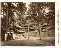 - Sujets : architecture religieuse, lanterne, sanctuaire shintō, torii