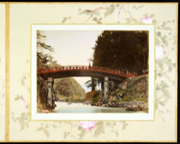 plantée au début du xviie siècle lors de la construction du Tōshō-gū. La longue série d'épreuves consacrée à Nikkō, qui compose la moitié de cet album, nous rappelle l'importance de cet ensemble à l'ère Meiji. Alors qu'aujourd'hui, lorsque l'on évoque l'architecture japonaise classique la quintessence en serait plutôt incarnée par Kyōto, la villa impériale Katsura ou l'esthétique des jardins zen, au xixe siècle c'est Nikkō qui incarne alors le mieux l'esprit japonais pour le gouvernement comme pour les visiteurs. Cette première photographie de la série, le pont sacré de Nikkō, sert de transition entre le monde profane et l'espace sacré du Tōshō-gū. Les sanctuaires et les temples de Nikkō ainsi que leur environnement naturel sont inscrits sur la Liste du patrimoine mondial de l’Unesco depuis 1999.Notes