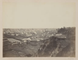 DANS les premiers jours de l'occupation de YOKOHAMA, l'existence de contraintes comme une large crique dont les ponts étaient jalousement surveillés, de postes de gardes sur toutes les hauteurs stratégiques et la présence d'un fort contingent de troupes, indiquait une tendance forte de la part des Japonais de renouveler la même politique d'exclusion et le même espionnage intrusif à l'égard des étrangers des autres nationalités malgré la signature de traités plus libéraux, comme cela avait été le cas pendant de si nombreuses années de celui envers les Hollandais de Decima [Dejima], dans le port de Nagasaki. On doit aux Français d'avoir les premiers traversé le canal et de s'être installés sur la hauteur dominant la ville et la baie de Yokohama. Depuis, cette colline a été proprement aménagée avec des allées en gravier et des parterres de fleurs ornementales et de nombreux baraquements et des réserves de charbon ont été installées au pied de la colline. En 1864, une étape supplémentaire fut franchie par la construction de baraquements temporaires pour les troupes anglaises, qui ont toujours été occupées depuis par une garnison rarement inférieure à un millier d'hommes. En 1865, un champ de tir d'environ deux tiers de mile de long fut achevé dans une vallée un peu plus loin de la colonie où, sous les auspices du 20e Régiment de Sa Majesté Britannique, plusieurs rencontres sportives furent organisées. La même année un aménagement supplémentaire pour le confort et le bien-être de la ville de Yokohama a consisté à l'installation d'enclos pour le bétail et d'abattoirs à Homoco [Honmoku], un petit village près de Mandarin Bluff, à environ deux miles. 1. Littéralement « la falaise française », aujourd'hui le quartier de Yamate appelé aussi Furansu yama (montagne française).Notes