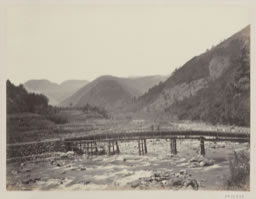 Pont proche d'Odawara, montagnes de Hakoni [Hakone] dans le lointain