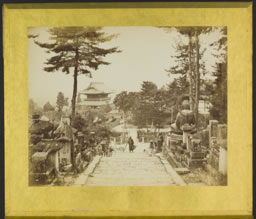 . L'imposante statue de Bouddha en pierre que l'on voit de dos sur la partie droite de l’image a aujourd'hui disparue. Le Kurodani-dera fut le temple de Kyōto le plus photographié au début de l'ère Meiji. On connaît des vues similaires par Uchida Kuichi et Raimund von Stillfried. Probablement parce qu'il fut l'un des lieux de mémoire de la guerre de Boshin qui se déroula lors de la restauration de Meiji, la bataille de Toba-Fushimi (鳥羽・伏見). Cette bataille décisive pris place du 27 au 31 janvier 1868