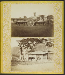 Comme sur la photographie précédente (cf. 10556), Ichida a fait poser un de ses assistants pour la scène. Dans l'épreuve précédente l'assistant se fondait discrètement dans la scène, mais ici sa présence est assez incongrue. Alors qu'un paysan manœuvre la charrue pour labourer, l'assistant est juste « planté » au milieu de la scène, regardant fixement l'objectif. Ses vêtements contrastent avec ceux des paysans, il porte une courte veste de style happi. En examinant l'image attentivement avec une loupe on discerne deux kanji sur le revers de son happi qui se lisent Ichida. Il s'agit du nom du photographe, Ichida Sōta, qu'arbore son assistant et qui sert de signature à cette image. Sa présence n'apporte rien à la composition en tant que scène de genre mais ajoute, pour nous, spectateurs du xxie siècle, une touche de mystère. La même page de l'album comporte deux épreuves l'une en dessous de l'autre. La précédente (cf. 10556) et celle-ci. L'une prise à Kyōto, l'autre à Kōbe. Il semble que ces deux épreuves soient reliées par le sujet : l'utilisation d'animaux de trait (bœufs) dans les travaux agricoles.