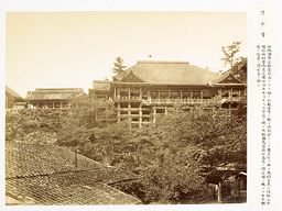 Situé sur le mont Otowa, district d’Otagi, province de Yamashiro [actuel arrondissement de Higashiyama, Kyōto], le temple était à l’origine nommé Kita Kannon-ji. L’école bouddhique Hossō  1 et le bouddhisme ésotérique Shingon  2 y sont représentés. Le 19e jour du 10e mois de l’an 24 de l’ère Enryaku [805], le dainagon  3 Sakanoue no Tamuramaro reçut le terrain sur ordre de l’État. La négociation avec le moine Enchin du temple bouddhique Kojima-dera aboutit à l’installation d’une statue du Senju Kannon  4 et à renommer le temple en Kiyomizu-dera.