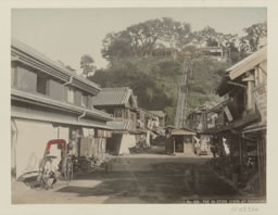 - Sujets : construction civile, escalier, être humain, lanterne, jinrikisha (pousse-pousse), rue