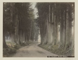 , après un trajet de cinq heures. De là, ils finissaient le trajet en une journée de jinrikisha. Cette superbe allée menant à Nikkō est vite devenue un grand classique de la photographie touristique et l’on retrouve des vues similaires proposées par tous les photographes commerciaux comme Raimund von Stillfried ou Kusakabe Kimbei, mais avec des compositions aux perspectives plus géométriques qu’ici.Notes