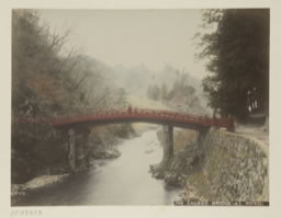 . » Le Sanbutsu-dō (三仏堂) auquel fait référence Labit est le bâtiment principal du temple bouddhique Rinnō-ji (輪王寺) qui renferme trois statues dorées en bois hautes de 8 mètres, liées au Bouddha Amida Nyōrai. L'enceinte du temple abrite la tombe du troisième shōgun Tokugawa, Iemitsu (家光, 1604-1651). La vue de Tamamura, prise de l’autre pont, permet d’isoler le pont sacré. Suzuki Shin'ichi II (二代目鈴木 真一, 1855-1912), pour un sujet similaire, conservé également au musée Guimet (cf. épreuve 18230), avait préféré prendre le pont en contre-plongée, depuis le lit de la rivière, pour accentuer sa solennité. 1. Georges Labit, né le 12 février 1862 à Toulouse et mort le 9 février 1899 dans la même ville, est un voyageur et commerçant français. Il visita une première fois le Japon en 1889 où il réunit de nombreux objets, à la fois pour sa collection personnelle et pour approvisionner le bazar de son père, la Maison Universelle à Toulouse, place du Capitole. Il a fait construire le musée orientaliste Georges Labit à Toulouse pour y présenter sa collection. 2. LABIT Georges, Au Japon – Souvenirs de voyage, Toulouse, 1890, p. 43. (réédité en fac-similé par le musée Paul Dupuy à Toulouse en 1993). Notes