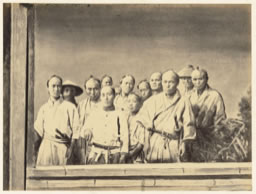 ), situé sur la rive opposé du détroit de Shimonoseki, face au fief de Chōshū, mais alliés au shōgun et donc neutres ou du côté des Occidentaux dans cette expédition… Le Bas visita le fief de Buzen dans les jours qui suivirent la fin des combats. Il y photographia également un petit temple bouddhique (cf. épreuve 23 dans l'album, cote 21950). 1. Notons le contraste avec sa série de « guerriers japonais » en armures de parade. 2. La légende de cette photographie est plus précise dans l'article : Groupe d'officiers et de soldats Japonais de la province Bouzen (île Kiousiou). Cet article est reproduit dans : POLAK Christian, Soie et Lumières : l'âge d'or des échanges franco-japonais : des origines aux années 1950, Tōkyō, Hachette Fujingahō, 2001, pp. 96-97. 3. Concernant Roussin, voir également les épreuves 9 (cf. 21936) et 15 (cf. 21942) de cet album. 4. À peu près l'actuel département de Fukuoka.Notes